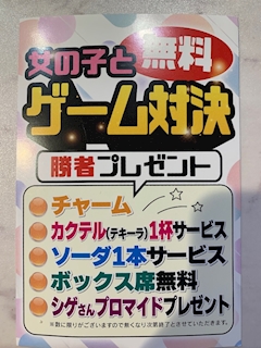今日から ゲーム対決に勝利したらなんと!! カクテルなどお酒の サービス券がもらえちゃえます👏 ぜひお待ちしてます💕