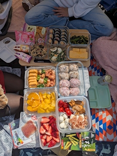 今日寒い! 風つよい!🤧 花粉飛びまくり! 早くスギの花粉の時期終わってほしい、、、 今回のお花見は おのおの家にあるもので 少しずつ持ち寄って で、適当にだったのに 並べてみたら豪華になった! 彩りも最高☺ 人の作ったご飯ってとくにおいしい!